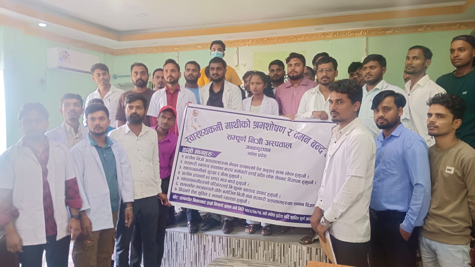 मधेस प्रदेशका निजी स्वास्थ्य संस्थामा कार्यरत स्वास्थ्यकर्मीहरूले आफूहरूमाथि भइरहेको असमान व्यवहार र श्रम शोषणविरुद्ध आन्दोलनमा उत्रिने चेतावनी दिएका छन् ।