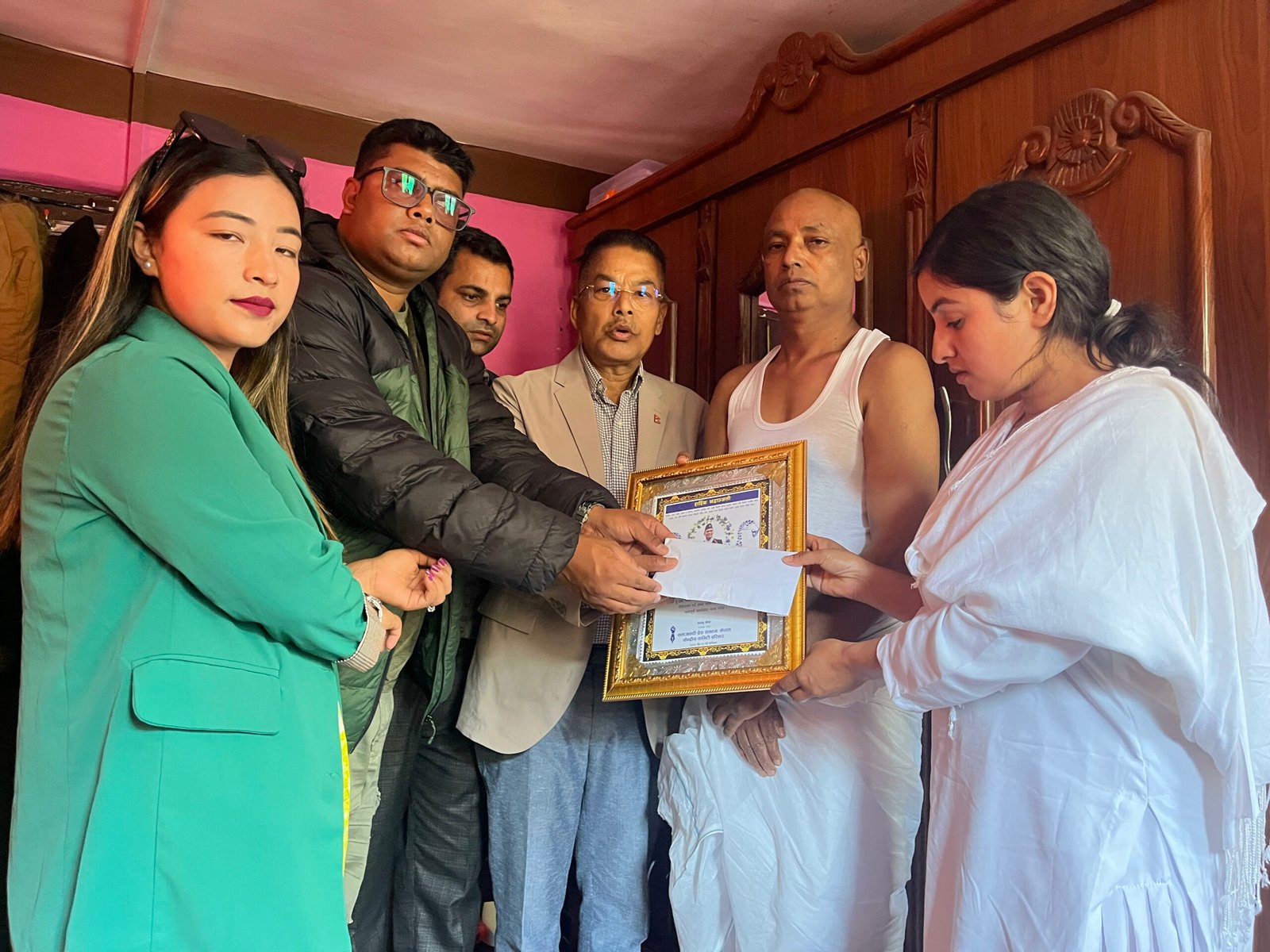 सङ्गठनका अध्यक्ष शम्भु श्रेष्ठको नेतृत्वमा परिवारलाई भेट्न गएको प्रतिनिधिमण्डलले आज उक्त रकम रजकी श्रीमतीलाई हस्तान्तरण गरेको हो । यही चैत १५ गते त्यस क्षेत्रमा भएका आन्दोलनको समाचार सङ्कलनका क्रममा आगजनीमा परी उनको निधन भएको थियो ।