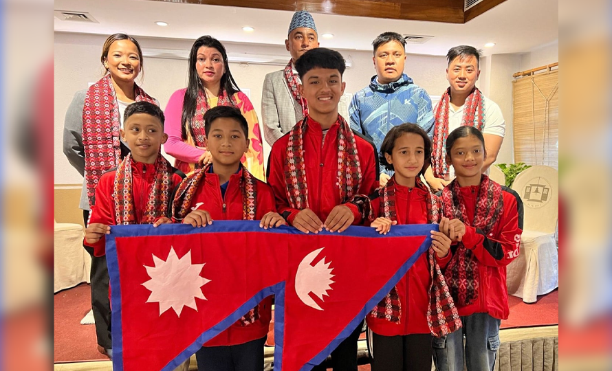 ३० केजीमुनि हृदयणी बस्नेत, ३४ केजीमुनि जोलिना बस्नेत, २४ केजीमुनि सोहन पाठक, यू–१२ एकल पुम्सेमा सक्षम श्रेष्ठ र यू–१४ एकल पुम्सेमा आश्रय उपाध्यायले प्रतिस्पर्धा गर्ने छन् । नेपाली टोलीको प्रशिक्षकमा सरोज तामाङ रहेका छन् ।