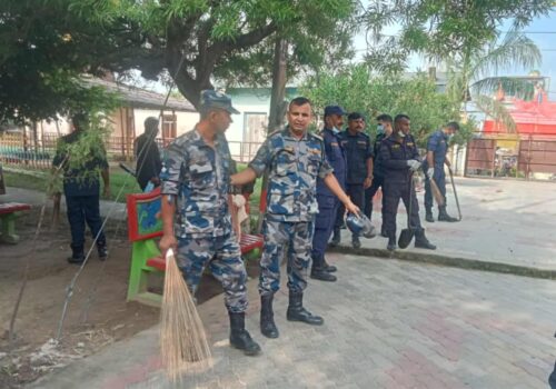 सिम्रौनगढको कंकाली माई मन्दिरमा प्रहरी, विद्यार्थी र स्थानीयको संयुक्त सरसफाइ“